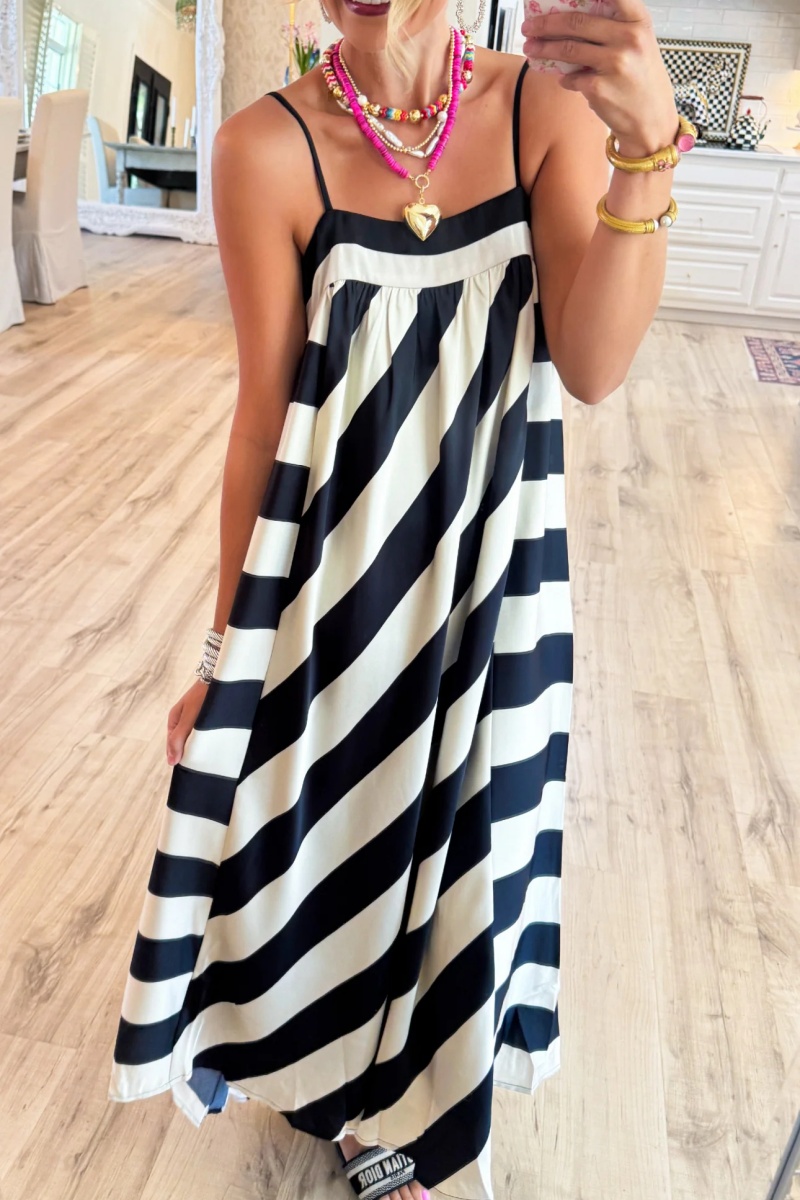 Black and Cream Bold Stripe Maxi Dress