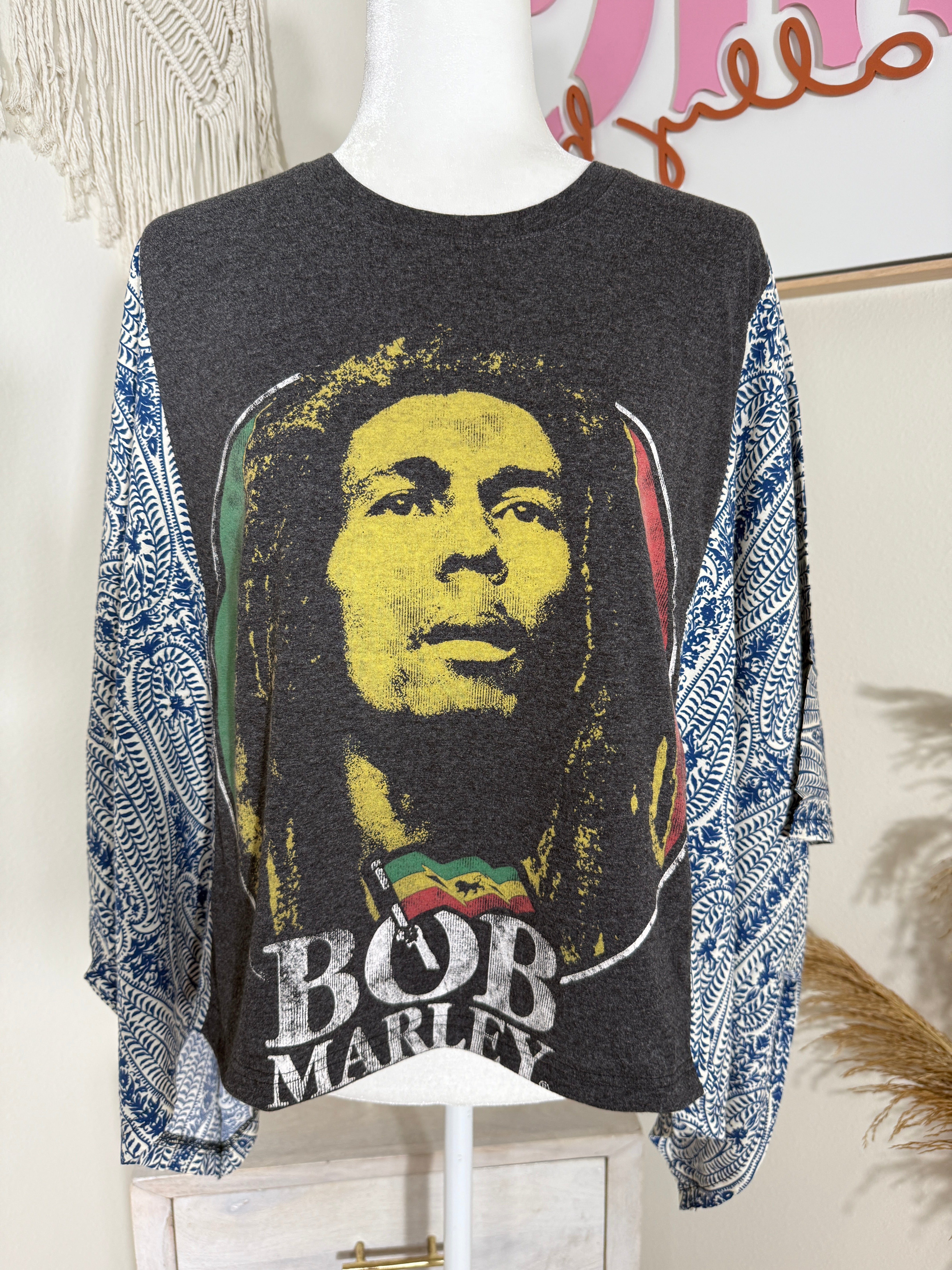 Bob Marley Mix & Match Tee Grey Blue Floral