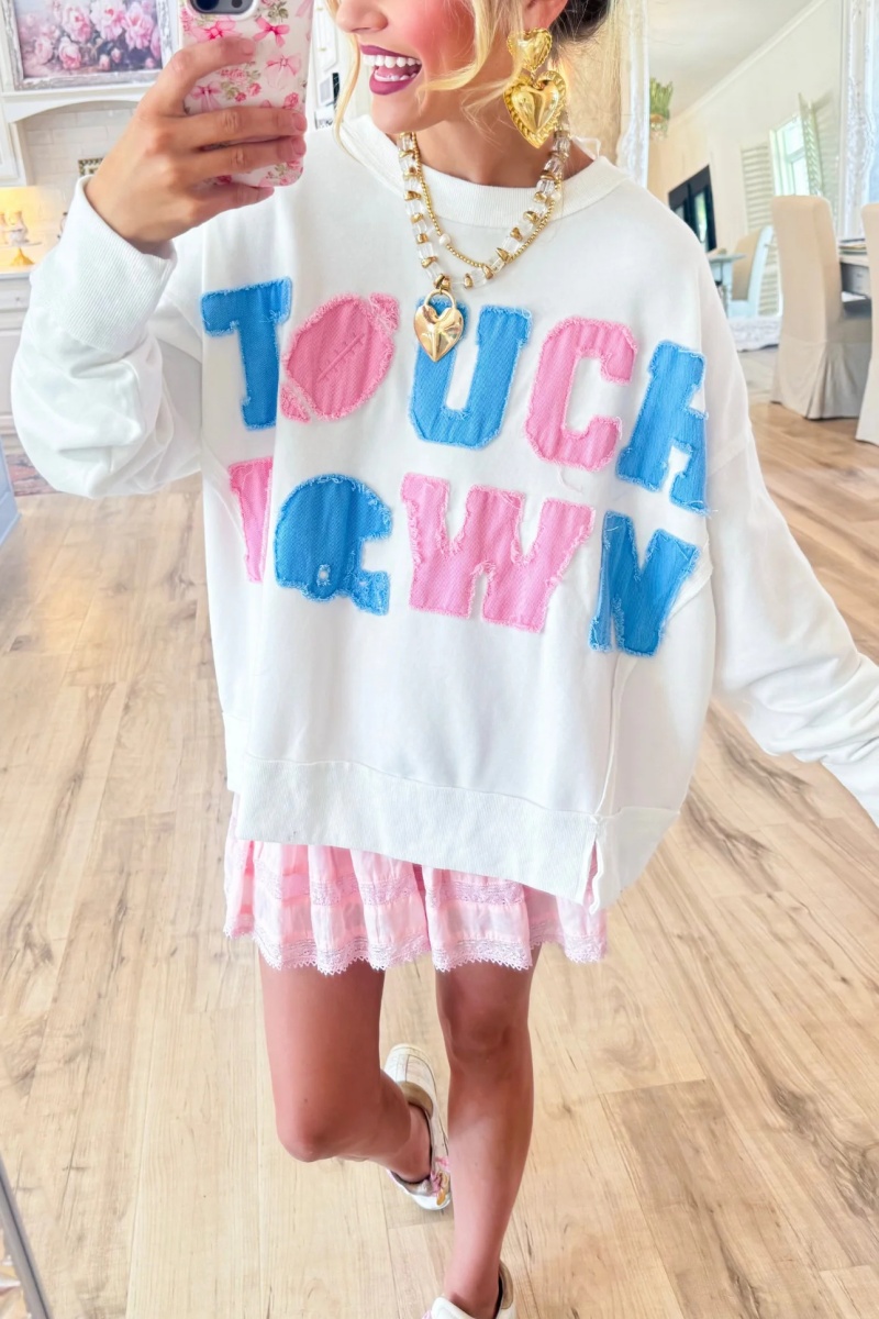Pink and Blue Touchdown Patchwork Sweatshirt