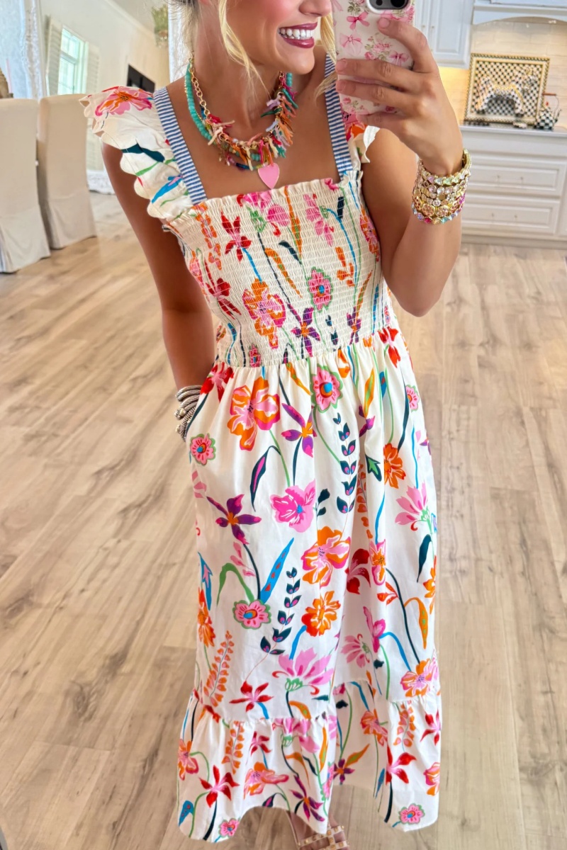 Cream Floral Print Maxi Dress