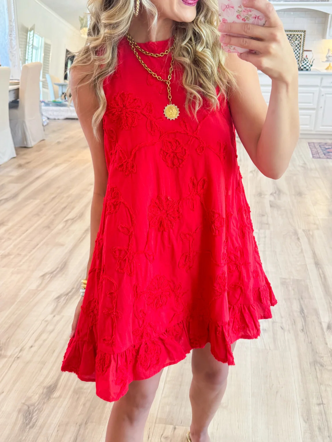 Flower Ruffle Hem Mini Dress