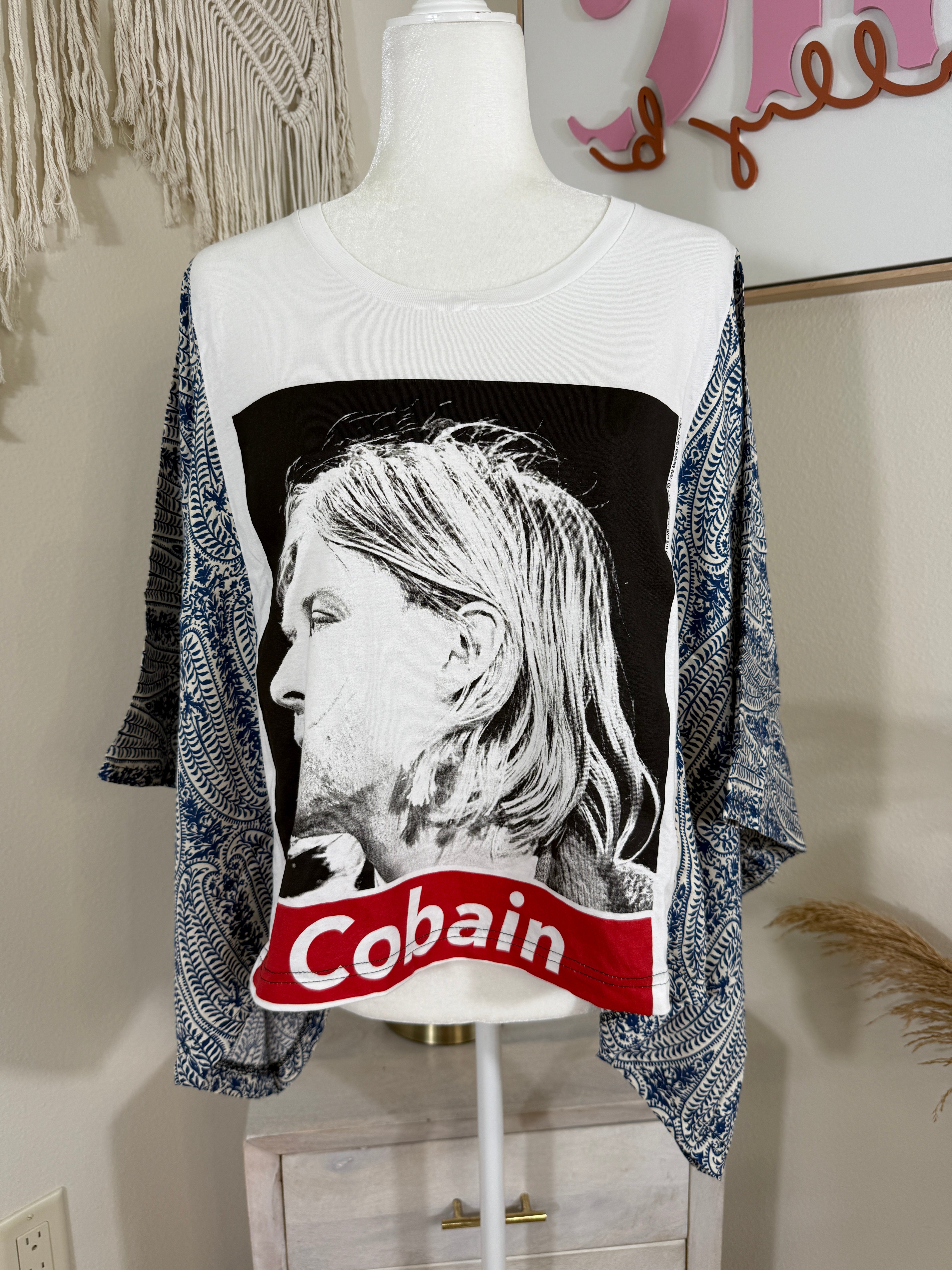 Kurt Cobain Mix & Match Tee Black Blue Floral