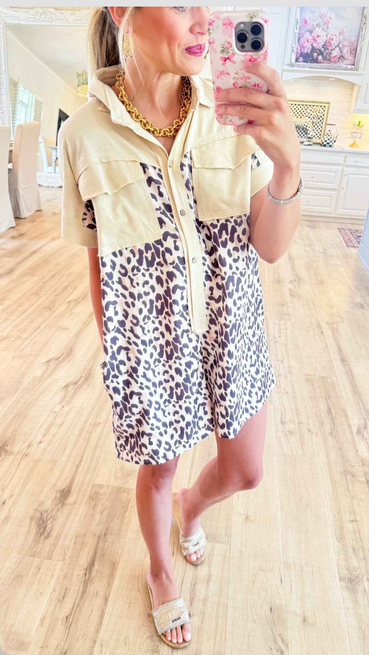 Leopard & Cream Buttoned Collard Jumpsuit