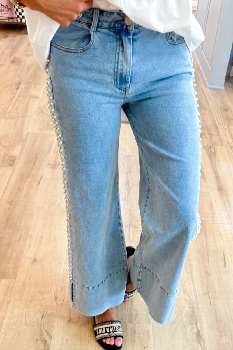 Light Wash Pearl Embellishment Jeans
