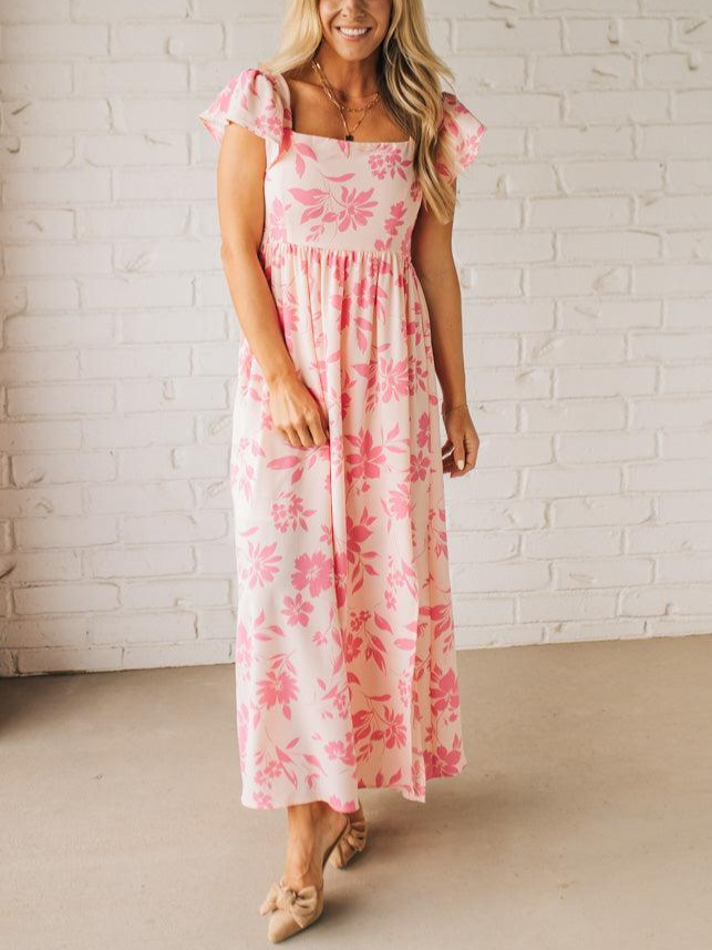 Ruffle Sleeve Square Neck Maxi Dress