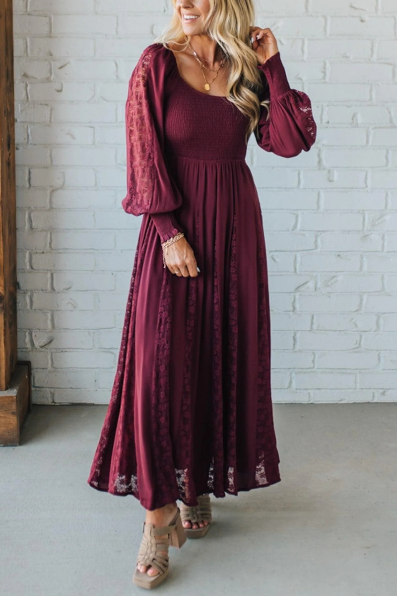 Livey Lace Insert Smocked Maxi Dress