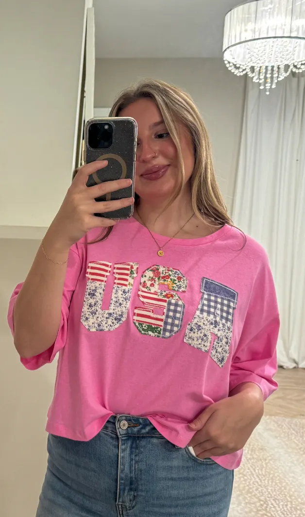Pink USA patchwork top