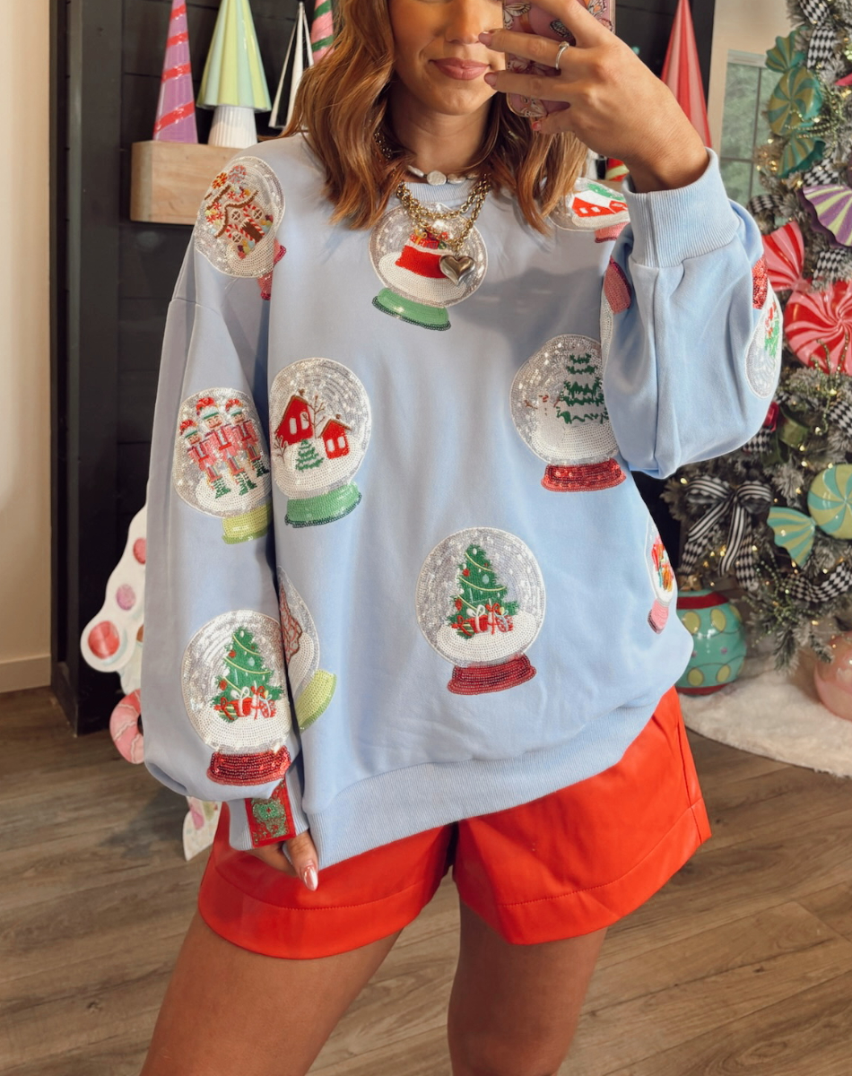 Queen Of Sparkles Powder Blue Christmas Snow Globe Sweatshirt