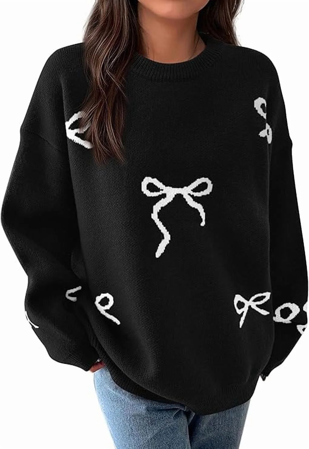 Crewneck Casual Cute Bow Chunky Knit Oversized Sweater