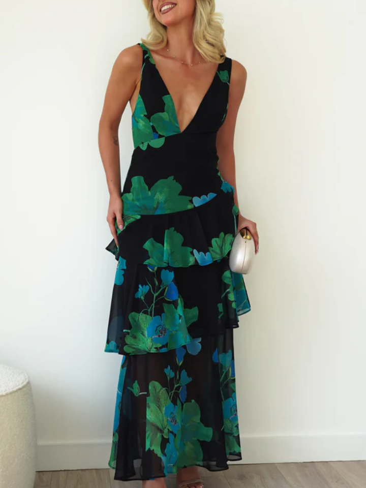 Strappy Back Ruffle Midi Dress