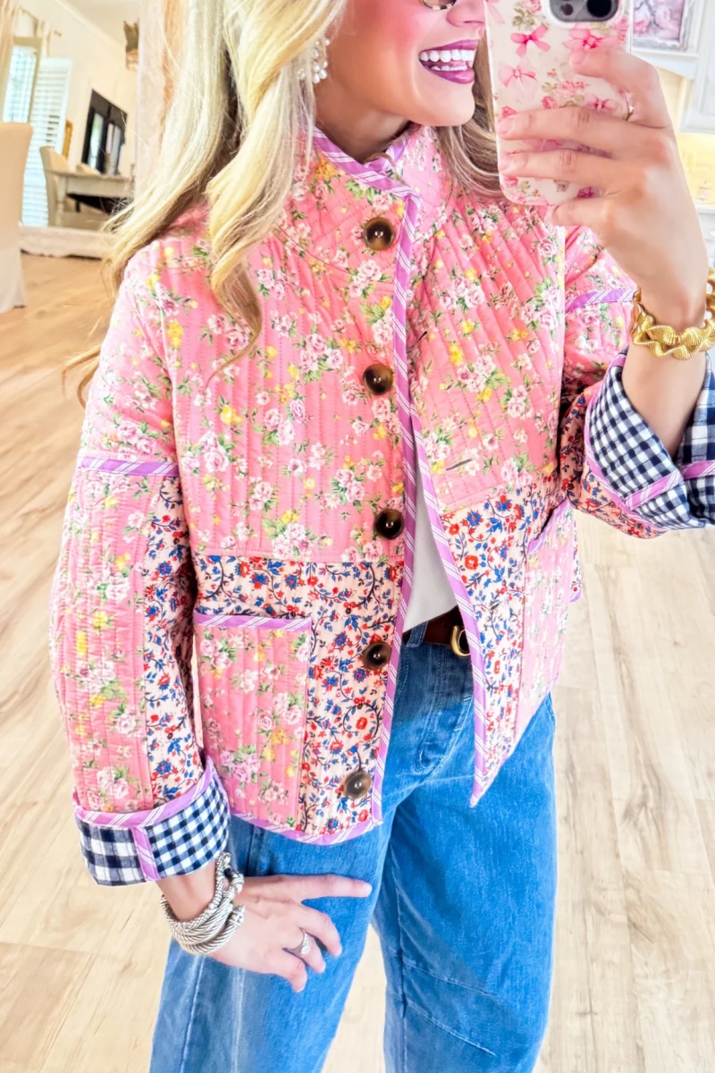 Pink and Navy Multi Print Reversible Jacket