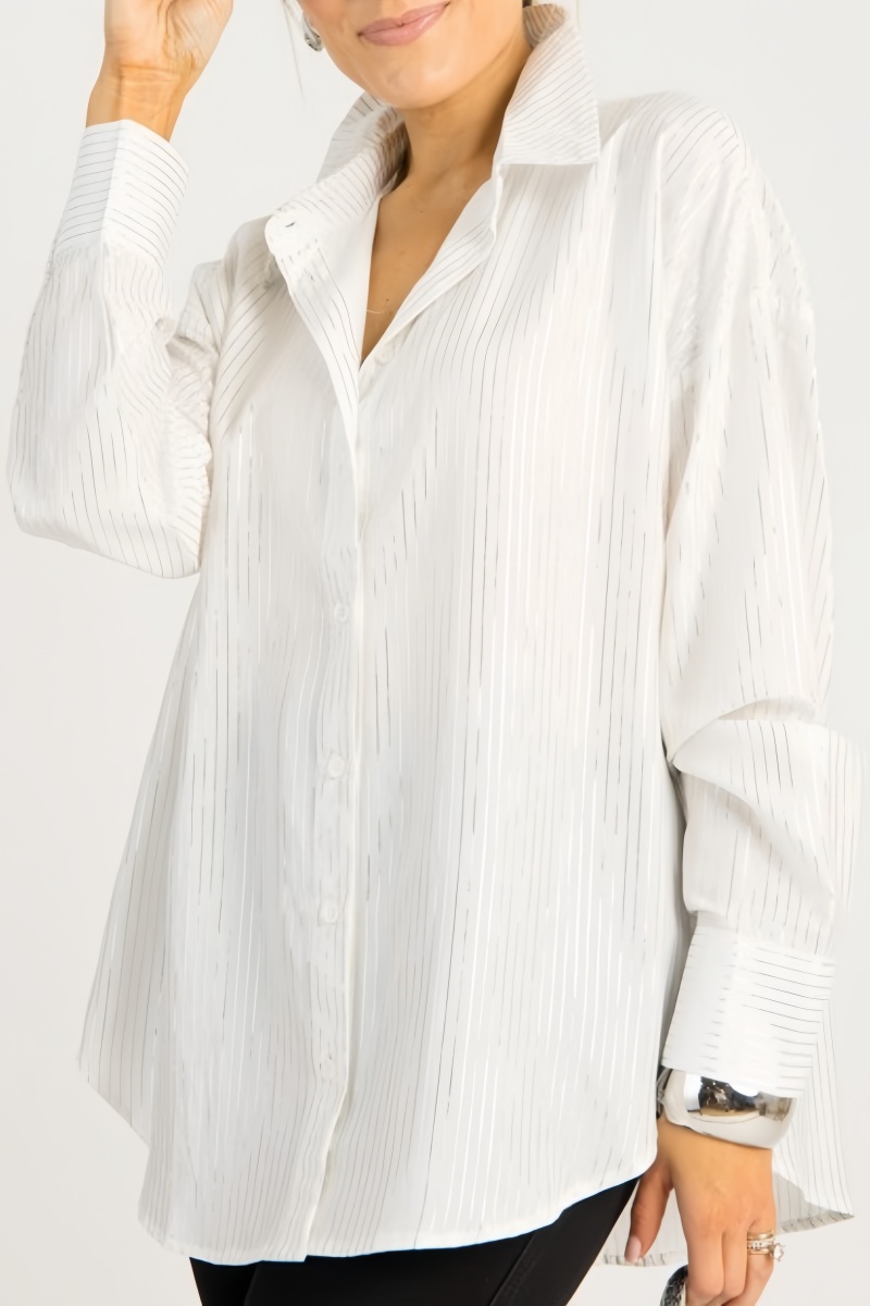 Metallic Striped Button Down Top